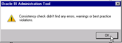 After building the initial business model, you must validate the repository before continuing. You do this by checking the repository for errors using the consistency check option.