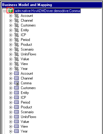 On the Business Model and Mapping Tab, click adm.native.HsvADMDriver:<server>:<application>.