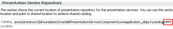 In the Catalog Location text box, scroll to the end and replace the existing repository name with HFM.