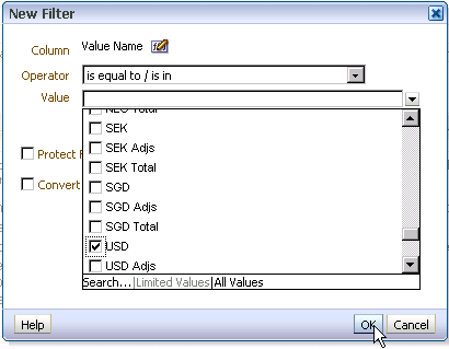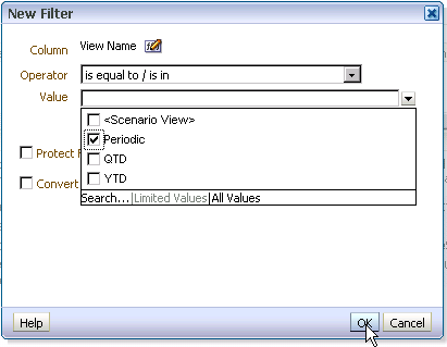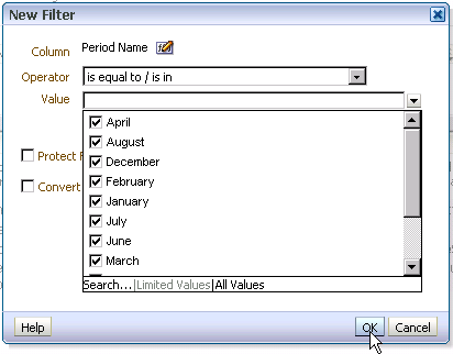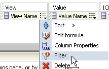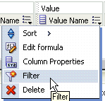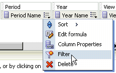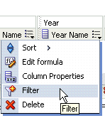 In the Selected Columns pane, click the toolbar icon next to Year Name, and then click Filter.