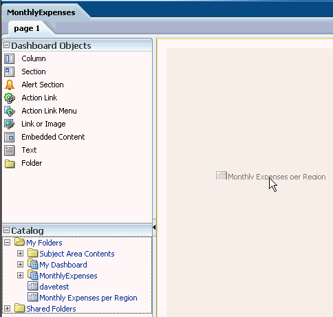 In the Catalog pane, select the analysis that you created and drag it to the Page Layout pane.