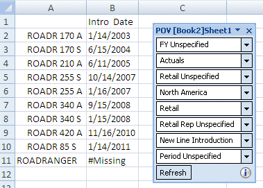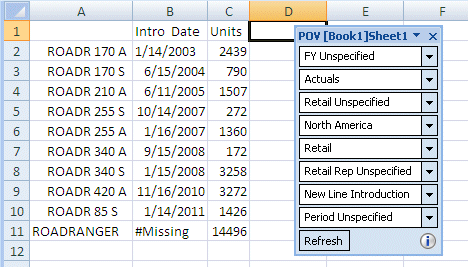 Adjust the POV to match the input specifications, then produce a report showing Roadranger products by Intro Date.