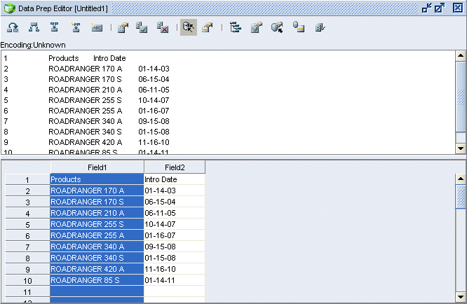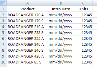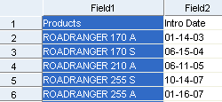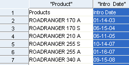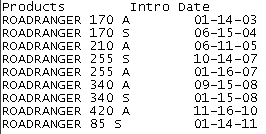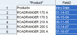 The tab-delimited input file, IntrDate.txt, contains all of the introduction dates for the Roadranger products, as shown in the following figure: