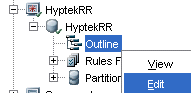Expand the HyptekRR application and database, then right-click Outline and select Edit.