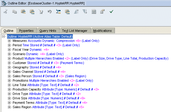 The Hyptek corporation, manufacturer of hard disk drives, uses Essbase for sales budgeting and forecasting (BSO databases), as well as current year and historical sales analysis (ASO databases). Current year "units sold" data is loaded into an Aggregate storage (ASO) cube every month and used for standard and ad hoc reporting. Monthly data files are archived at the end of each year.