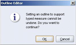 A confirmation message is displayed, indicating that once you enable an outline to support typed measures, it cannot be reverted to an outline that does not support typed measures. |
