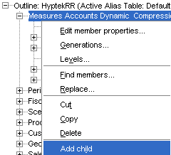 Expand the Measures dimension, then right-click Measures and select Add child.