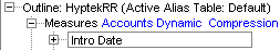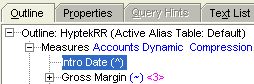 Click OK. Since date measures should not be aggregated, Intro Date is assigned the non-aggregation operator (^) by default.