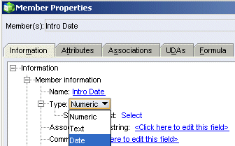 In this tutorial, you learned how to enable an Essbase outline to accept dates as data and to load dates using a data load rule and an input file.