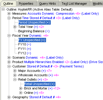 Due to the long time horizon for this analysis, outline members usually associated with monthly reporting are inappropriate. For example, the Fiscal Year dimension normally spans three years--insufficient for this project. Some new level 0 members need to be added to the outline. (The remaining dimensions already contain members to support the cumulative units report.)