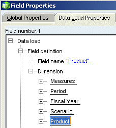 In the Data Load Properties tab, expand the dimension list to reveal Product, then double-click Product.