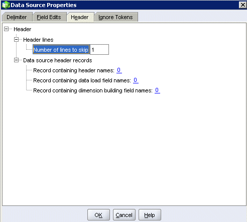 Select the number of header lines to be skipped during the data load, in this example, 1, and then click OK.