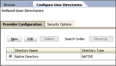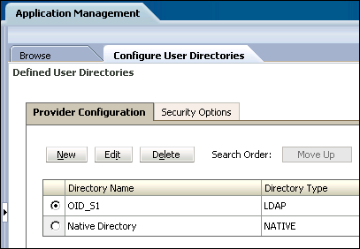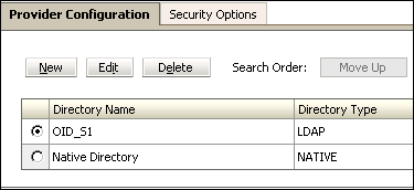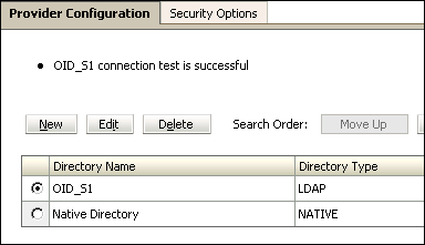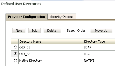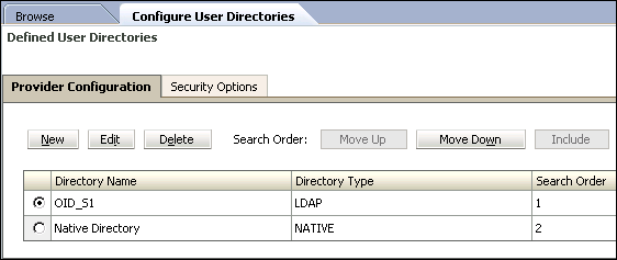 The Oracle Internet Directory that you added is displayed on the Provider Configuration tab on the Defined User Directories page.