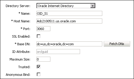 In the Directory Server drop-down list, select Oracle Internet Directory.