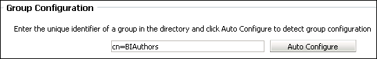 Data entry on the Group Configuration page is optional. If you do not enter the group URL settings, Shared Services searches within the Base DN to locate groups. The search can negatively affect performance, especially if the user directory contains many groups.