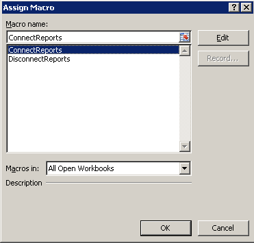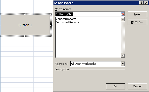 In this topic, you create Connect and Disconnect buttons within Excel, and you assign them the VBA functions that you created.