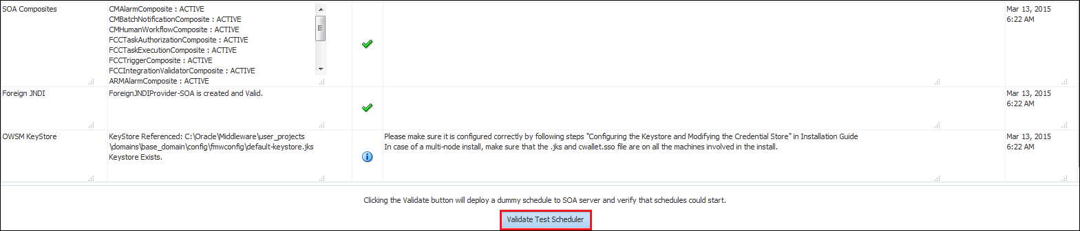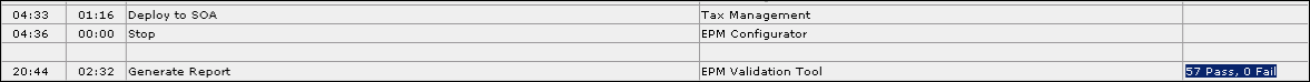 The second half of the page has a utility that will generate a test Main Orchestration Process, deploys it to soa server and start a test task. The status for each task is displayed in a table below it and should there be any errors - the possible cause of the error and the way to fix it will be displayed in the last column.