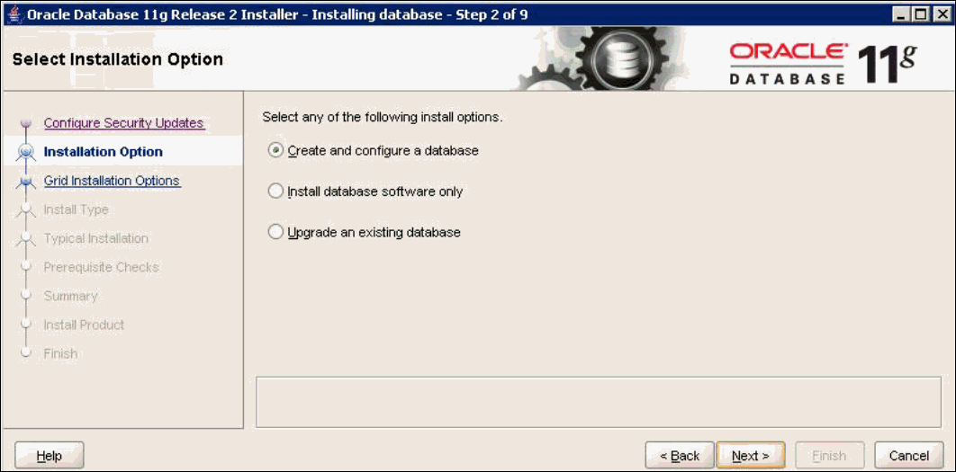 In Select Installation Option, ensure that Create and configure a database is selected, and then click Next.