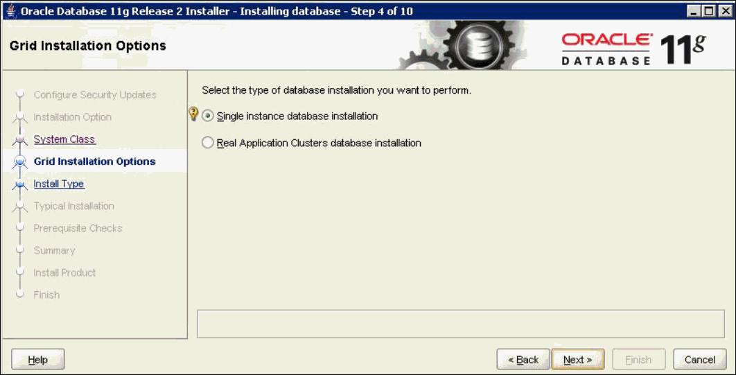 In Grid Installation Options, select Single instance database installation, and then click Next.