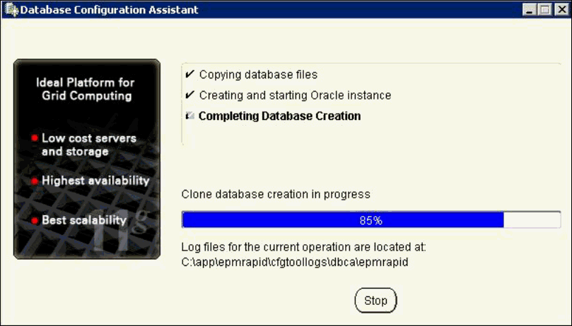 After completing the installation process, the installer runs the Database Configuration Assistant.