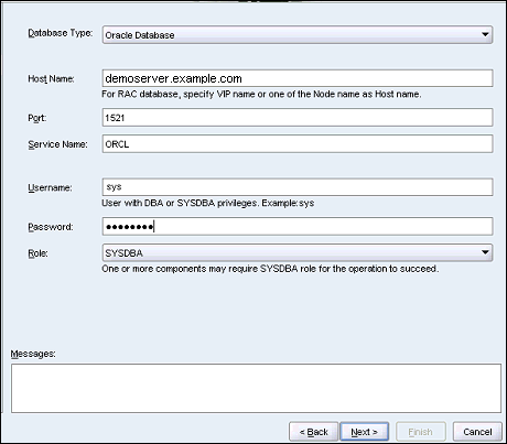 - Global Database Name: Enter Database System ID (SID) to uniquely identify the database on a system. Make sure that SID doesn't contain dots.
