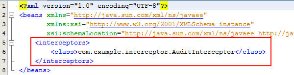 Note: The class definition is the fully qualified class name of the interceptor implementation.