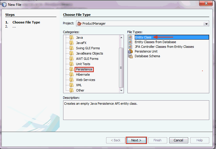 In the Projects window, right click ProductManager and select New > Other from the drop down menu options