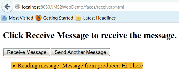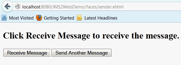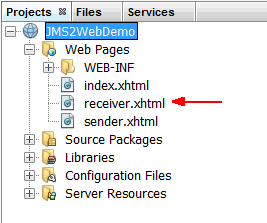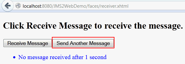 sender.xhtmlandreceiver.xhtml - Modify the JSF managed beans to send and receive a JMS message