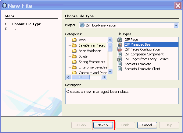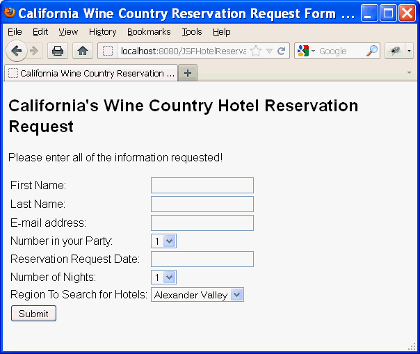 browser, and start the application by entering http://localhost:8080/JSFHotelReservation
