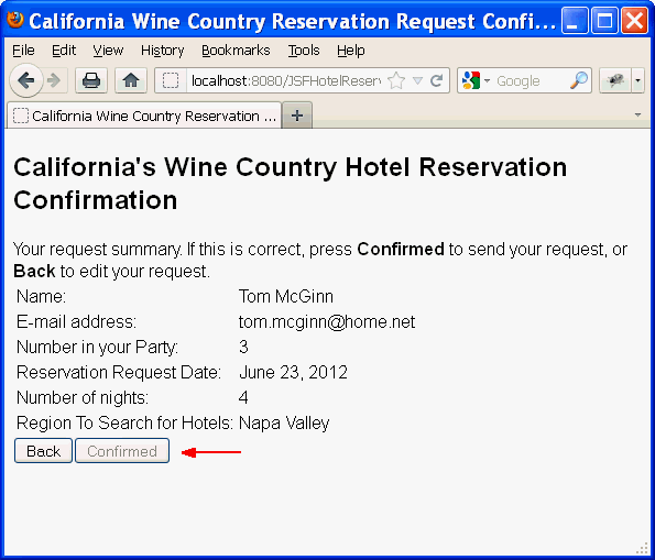 You can use the Back button to edit your data. The Confirmed button is not functional yet. You will make it function in this tutorial.