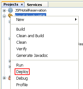 Right-click on the NapaSubscriberMDB project and select Deploy.