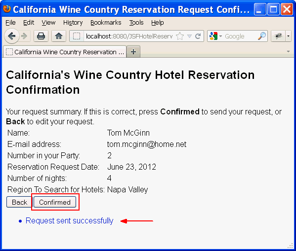 application again by entering the URL: http://localhost:8080/JSFHotelReservation.