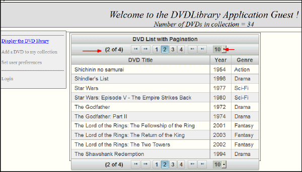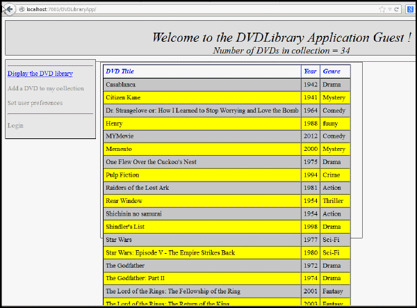b. In a web browser, enter http://localhost:8080/DVDLibraryApp/faces/list_PrimeFaces.xhtml