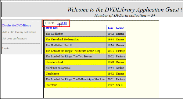 DVDLibrayAppand select Run.If the web browser does not open, open a web browser, enter http://localhost:8080/DVDlibraryApp in the address bar and press Enter.