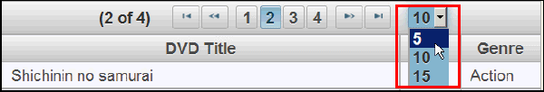Change the page size value to 15 to modify the number of records to be displayed per page.
