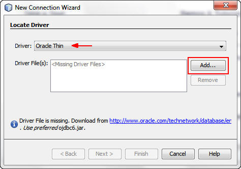 - Oracleシン・ドライバ、ojdbc6.jarをダウンロードし、ファイルをローカル・ディレクトリ(