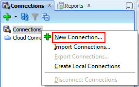 SQL Developerで「Cloud Connections」を右クリックし、「New Cloud Connection」を選択して、Oracle Database Cloud Serviceインスタンスとの接続を作成します。