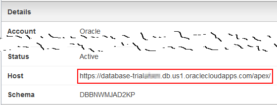 c. ホストURLを、Oracle Database Cloud ServiceコンソールのDetailsセクションからURLにコピーします。