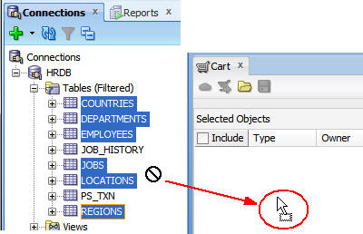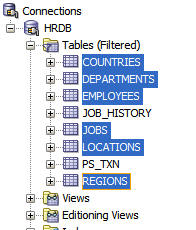 [Ctrl]キーを押して、「COUNTRIES」、「DEPARTMENTS」、「EMPLOYEES」、「JOBS」、「LOCATIONS」、および「REGIONS」を選択します。