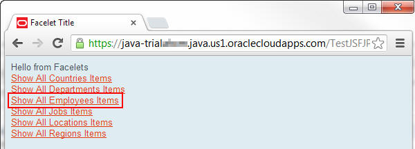 この表で、アプリケーションがOracle Java Cloud Serviceで実行されており、Oracle Database Cloud Serviceから正常にデータを取得していることを確認できます。