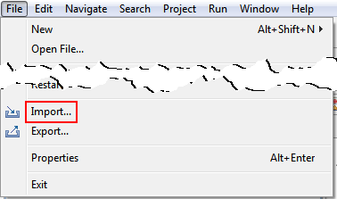 Oracle Enterprise Pack for Eclipseで「File」→「Import」を選択し、Importダイアログ・ボックスを開きます。