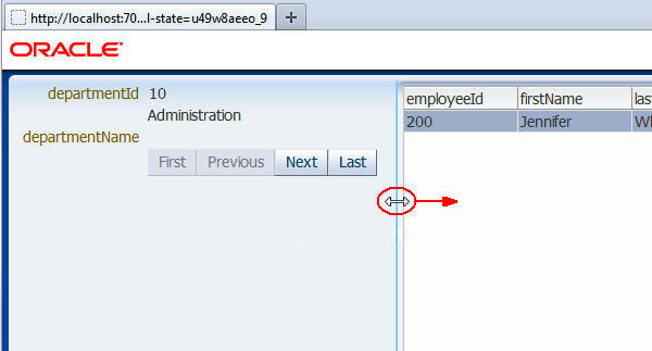 ブラウザ・ウィンドウで、従業員の表の左端を、ナビゲーション・コントロールが表示されるまで右にドラッグします。