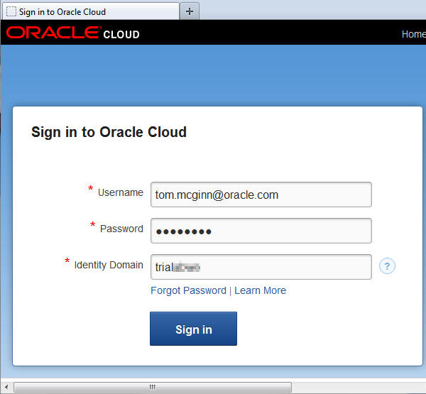 ブラウザ・ウィンドウが開きますが、まずOracle Cloudアカウントにサインインする必要があります。