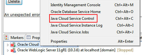 select Java Cloud Service Control.