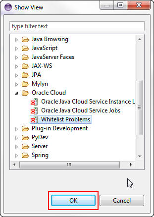 In the Show View dialog box, expand Oracle Cloud, select Whitelist Problems, and click OK.