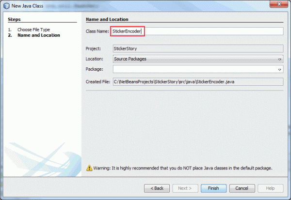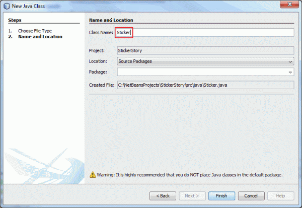 Enter Sticker as the class name.