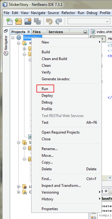 Right-click the StickerStory project and click Run to build and deploy the project.