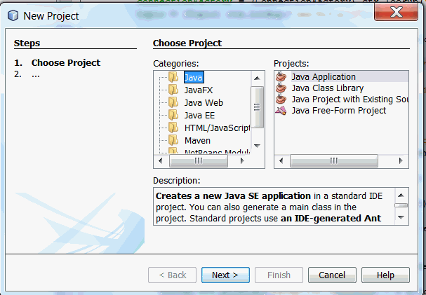 Select Java Application from Projects.