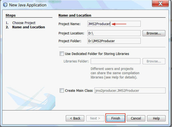 Enter JMS2Producer as the project name.