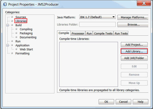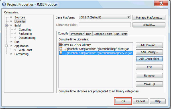 and appserv-rt.jar libraries to the JMS2Producer